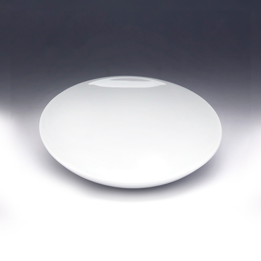 Выполнена из фарфора, поверх нанесена белая глазурь. Тарелка устойчива к царапинам и сколам, пригодна для мытья в посудомоечной машинке и нагрева в СВЧ-печи.