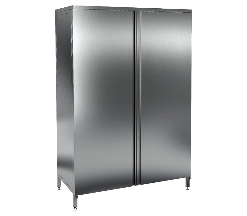 Доступ в камеру с четырьмя полками обеспечивается двумя распашными дверьми. Внутри можно хранить посуду, инвентарь, униформу, текстиль, продукты, которые не требуют специальных температурных условий.