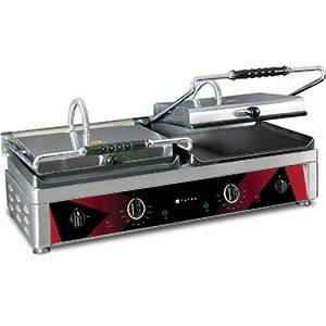 2 независимые зоны нагрева: все поверхности гладкие, выполнены из чугуна, каждая размером 360*270 мм, 2*2,5 кВт/220В, термостат: 50°- 310°C , индикатор температуры, 61 кг, 820*500*300 мм, корпус нерж., емкость для сбора жира.В интернет-магазине «МТО-ОНЛАЙН» вы можете купить этот сертифицированный товар: Гриль контактный Tatra TCG 2735 SS SS в розницу, по оптовым ценам. В категории Контактные грили, этот товар является одним из лидеров по продажам. Покупатели ценят бренд Tatra за его высокое качество и функциональность. На данной странице товара: Гриль контактный Tatra TCG 2735 SS SS, вы можете ознакомиться с описанием, изучить фотографии, характеристики и отзывы покупателей. На весь ассортимент Tatra предоставляется официальная гарантия.