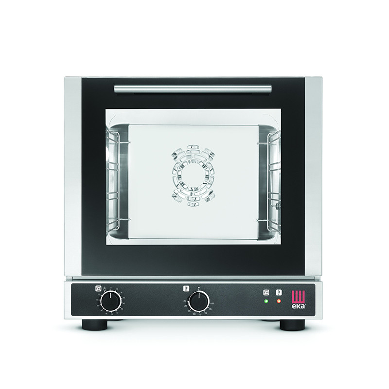Управлять оборудованием очень легко с помощью механической панели, на которой расположены два переключателя - регулирование температуры и установка таймера. Это позволит эффективно управлять рабочим процессом и отслеживать текущие параметры приготовления. Термостойкое стекло обеспечивает обзор блюд, исключая необходимость открывать дверь печи. А благодаря внутреннему освещению камеры можно контролировать процесс приготовления блюд. Компактные габариты конвекционной печи позволяют размещать ее на столах малой площади. Для организации удобного непрерывного цикла производства рекомендуется использовать печь в комплекте с расстойным шкафом TECNOEKA EKL 823.