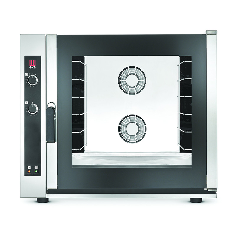 Управлять оборудованием очень легко с помощью механической панели, на которой расположены два переключателя - регулирование температуры и установка таймера. Это позволит эффективно управлять рабочим процессом и отслеживать текущие параметры приготовления. Термостойкое стекло обеспечивает обзор блюд, исключая необходимость открывать дверь печи. А благодаря внутреннему освещению камеры можно контролировать процесс приготовления блюд. Компактные габариты конвекционной печи позволяют размещать ее на столах малой площади. Для организации удобного непрерывного цикла производства рекомендуется использовать печь в комплекте с расстойным шкафом TECNOEKA EKL 864.